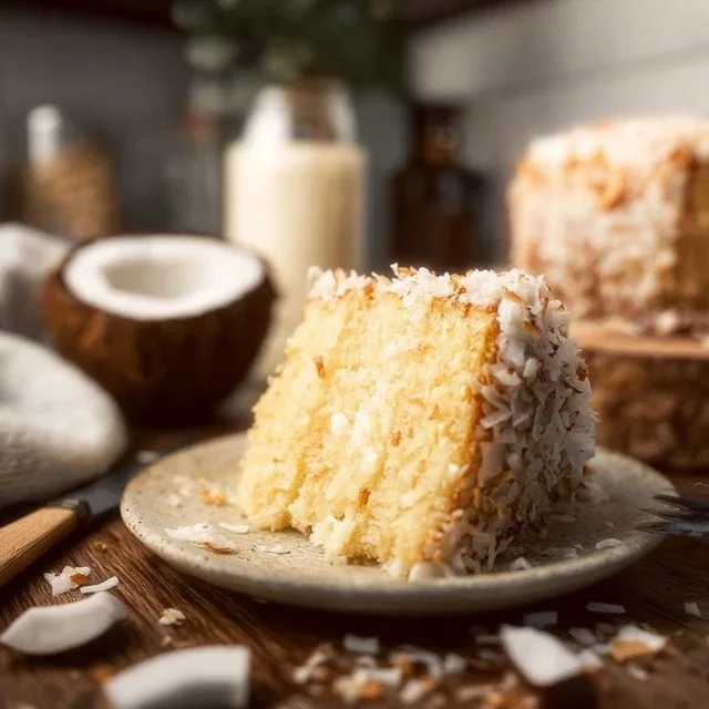 A delightful Coconut Cake with a creamy coconut custard filling and fluffy frosting, perfect for special occasions or a sweet treat any day.