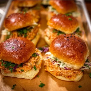 Delicious sliders filled with spicy buffalo chicken, perfect for appetizers or weeknight dinners.